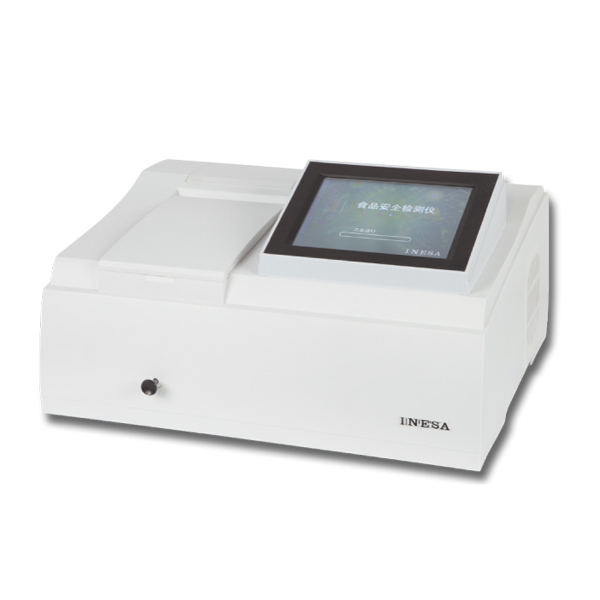 ,酶催化神經傳導代謝產物(乙酰膽堿)水解,其水解產物與顯色劑反應,產生黃色物質,用分光光度計測定412nm下吸光度隨時間的變化值,計算出抑制率,通過抑制率可以判斷出樣品中是否含有有機磷或氨基甲酸酯類農藥的殘留。可以實現有機磷及氨基甲酸酯類農藥殘留量的現場快速檢測。